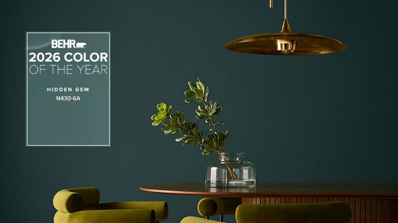 A Behr 2026-os év színe a Hidden Gem mély zöld árnyalat, azoknak szól, akik szeretik a természetes, mégis karakteres megoldásokat. Ez az árnyalat mélységet, nyugalmat és eleganciát visz az enteriőrbe, miközben időtálló alapot ad a lakberendezéshez.