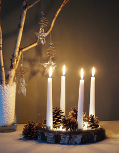 – fa, vagy fém, esetleg kerámia tálcára rendezett gyertyák,