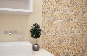 Kombinálásnál érdemes kontrasztot használni: pl. kisméretű mintás lappal a nagyméretű, ám egyszínű burkolat harmonizál.