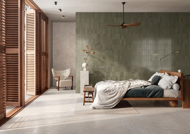 Válassz 2–3 fő színt (pl. fehér, bézs, zöld) és a különböző burkolatok ezek árnyalataiban jelenjenek meg. Például egy törtfehér alapú mintás padló + bézs egyszínű burkolat + fa bútor = harmonikus összhatás.