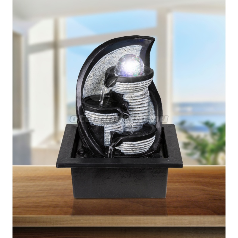 Asztali szökőkút üveggolyóval a tetején. A színváltós RGB LED biztosítja, hogy szökőkutunk különböző színekben pompázzon. A beépített szivattyú folyamatosan keringeti a vizet. Magassága 21 centiméter.