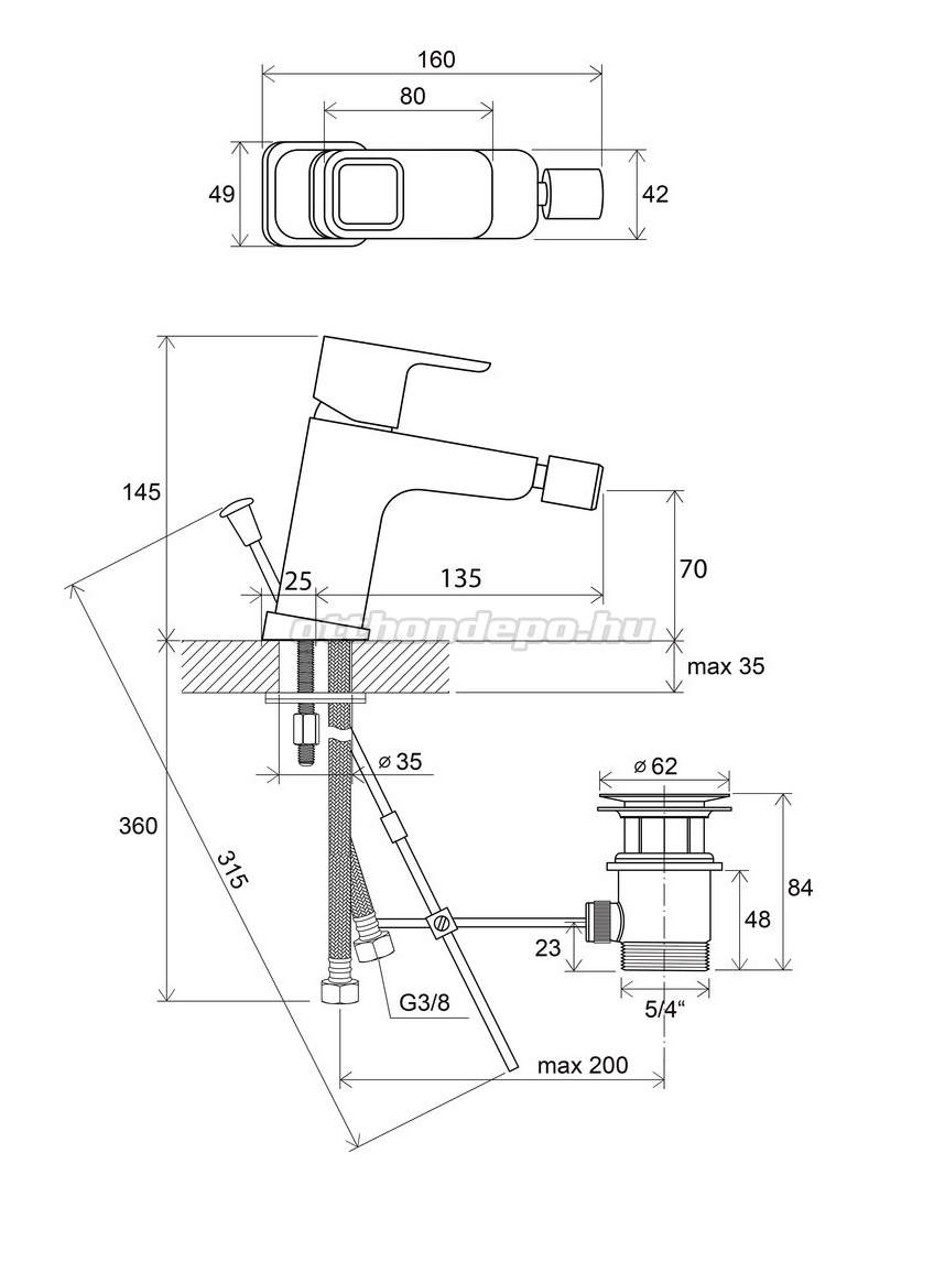 Ravak, 10° bidécsaptelep leeresztővel TD 055.00