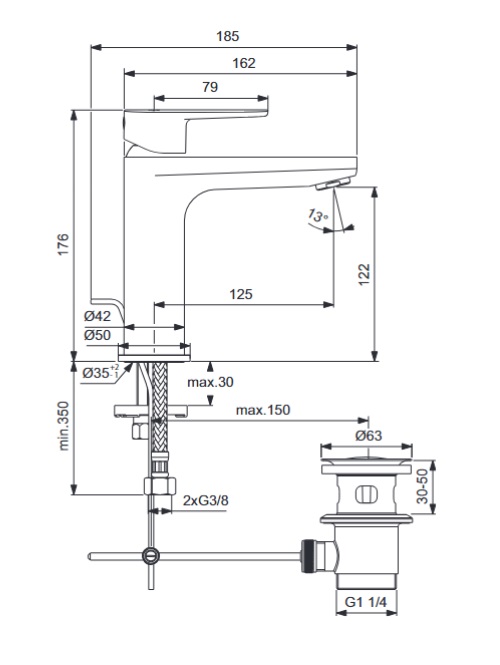 Ideal Standard, Cerafine O mosdó csaptelep leeresztővel H120, króm, BC699AA