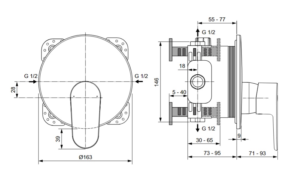 Az Ideal Standard Cerafine O falsík alatti zuhanycsaptelep tökéletes választás, ha modern és elegáns megjelenést szeretne a fürdőszobájában. A csaptelep krómozott felülete fényűző megjelenést kölcsönöz, míg a fém fogantyú kényelmes és pontos hőmérséklet-szabályozást biztosít.