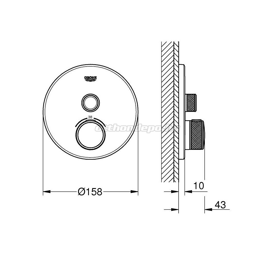GROHE SafeStop Plus opcionális hőmérséklet határoló 43°C vagy 46°C-nál, a csomagban