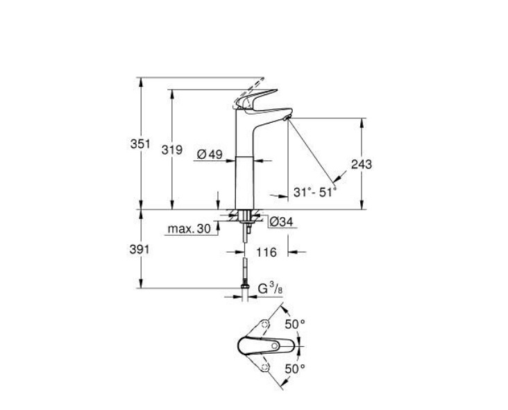 Grohe Euroeco Egykaros mosdócsaptelep 1/2 XL-es méret króm, 24273001