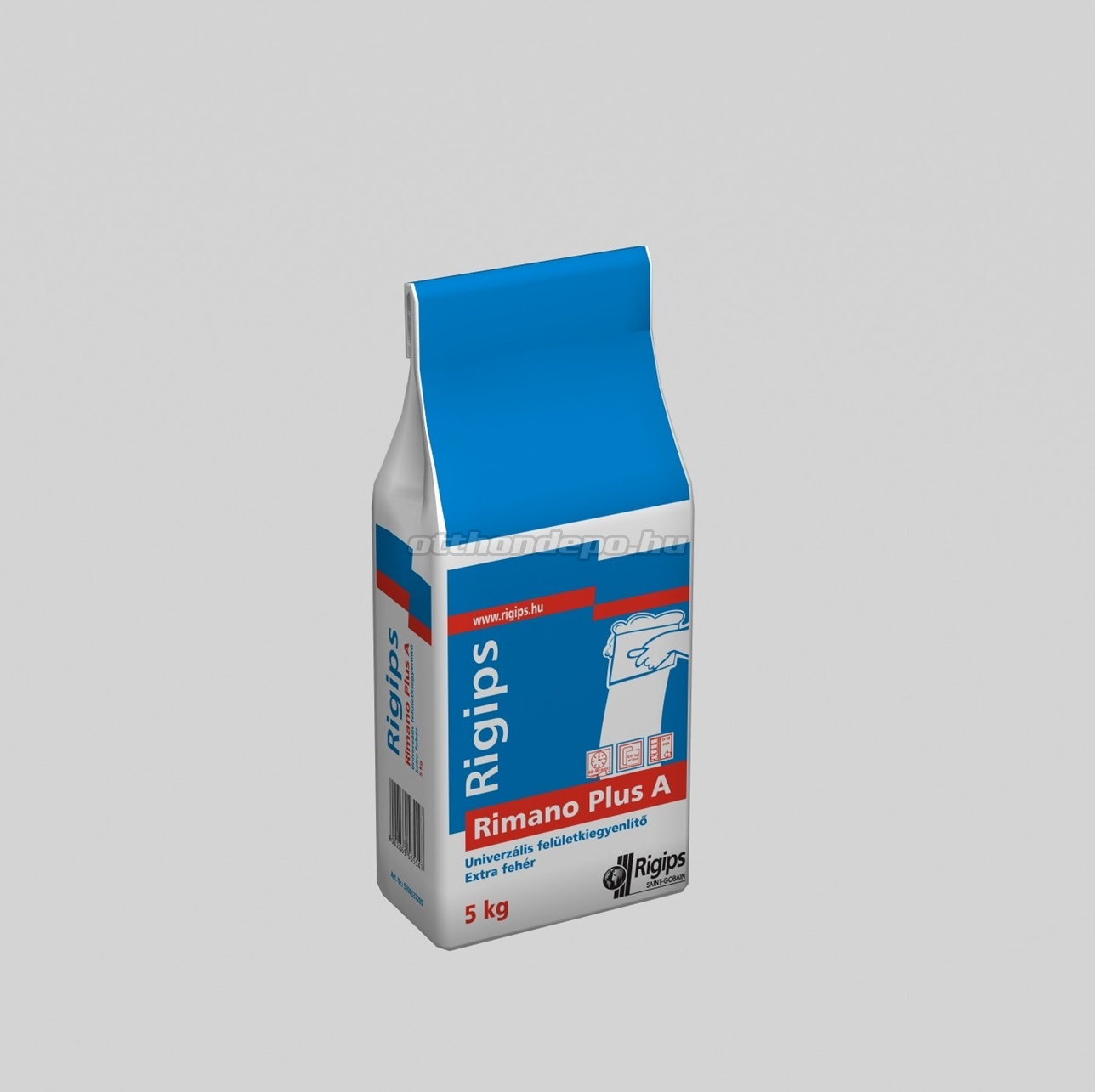 1 kg Rimano Plus A bekeverésével 1,5 kg felhasználásra kész felületkiegyenlítő masszát kapunk.