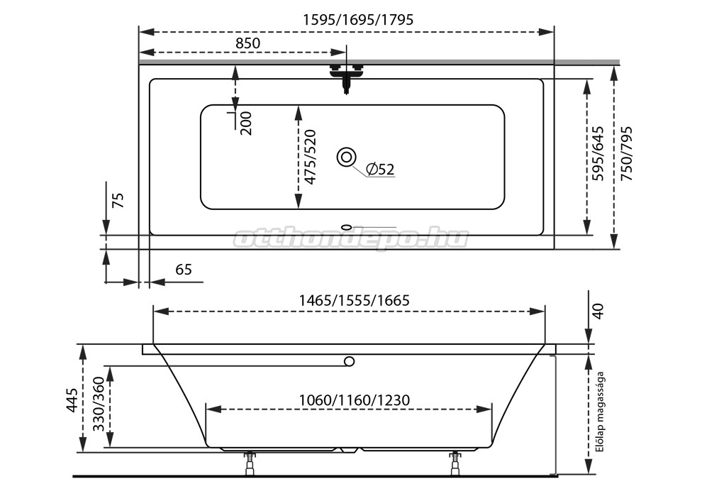 | A kád pontos mérete | 160x75 cm |