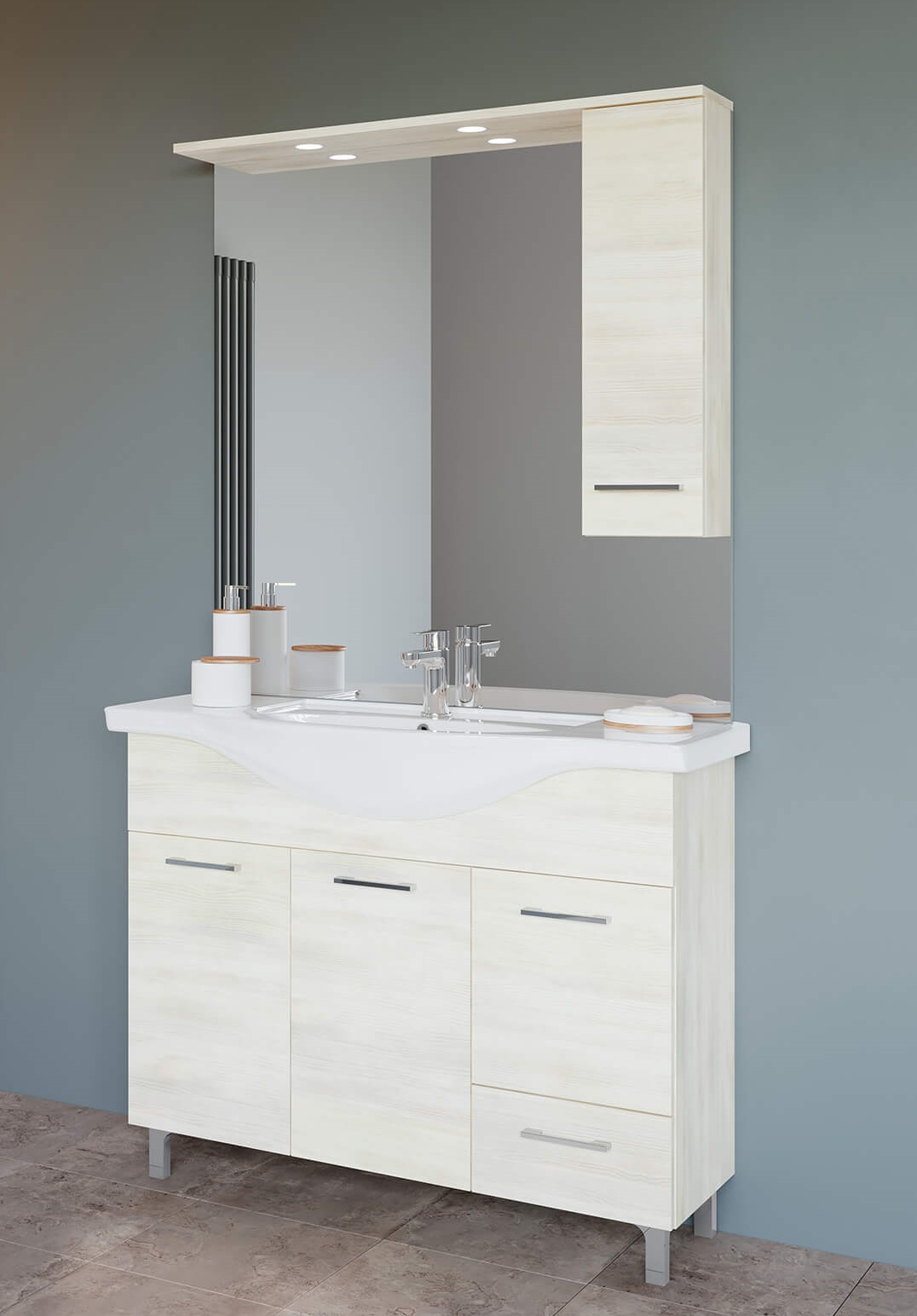 | A bútor felszereltsége | Mosdótállal; Tükrös felsőbútorral; Világítással; |