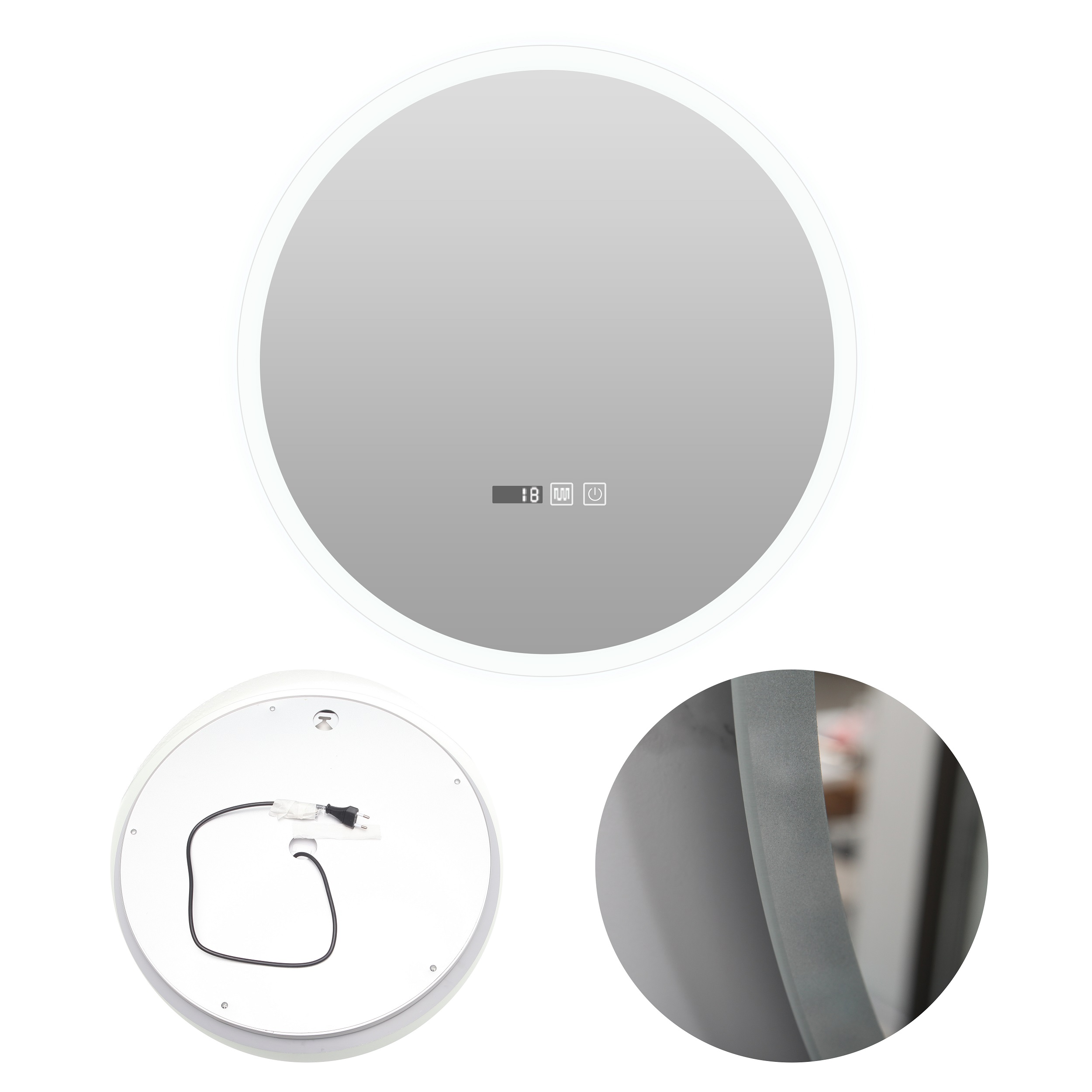 Az A.D. Kör alakú keretvilágítással ellátott, modern, rézmentes fürdőszobai tükör. A tükör IP67-es védelemmel ellátott, por és víz ellen. 3 színű fényerőszabályozás: Meleg fény/ Semleges fehér fény/ Hideg fehér fény, a beépített (120db lámpa / méter) gondoskodik erről. 8 mm vastag alumínium kerettel ellátott tükör.