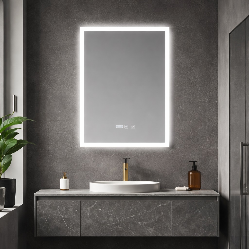 Prémium minőségű, szögletes alakú, LED-háttérvilágítású, áttetsző keretvilágítású fürdőszobai tükör – rézmentes kivitelben a tartósságért. IP67-es vízállósága és TÜV minősítéssel rendelkező vezetékezése garantálja a biztonságos és tartós használhatóságot. A 36 W-os integrált világítás három színhőmérséklete bármely napszakhoz illeszkedő fényviszonyokat teremt.