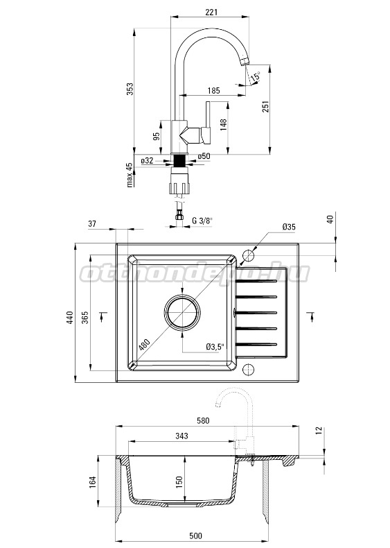 Gránit mosogató csapteleppel, 1 medencés csepegtetővel
