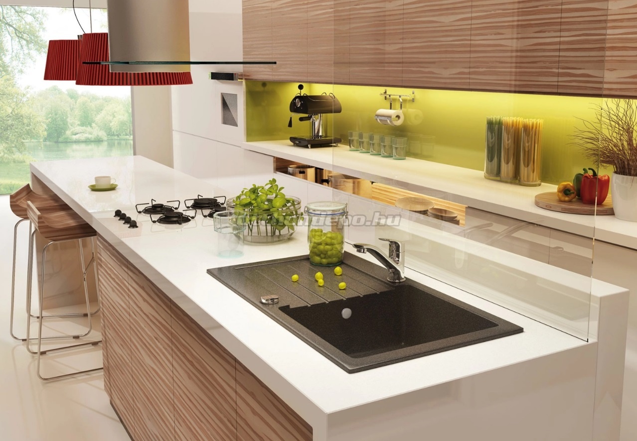 A gránit kompozit a kvarc homok és a gyanták ideális arányú kombinációja. Ennek köszönhetően mosogatóink nemcsak ütésállóak, hanem hőállóak (250°C), elszíneződés- és termikus sokkállóak - az EN 13310 európai szabvány szerint. Nem veszik fel a szagokat, és hidrofób tulajdonságokkal rendelkeznek, így taszítják a vízrészecskéket. A gránit elegáns és időtlen, és a színek széles választékának köszönhetően jól illik a konyhai berendezésekhez/minden konyha berendezéséhez jól illik - (futurisztikus/modern) és (klasszikus/hagyományos).