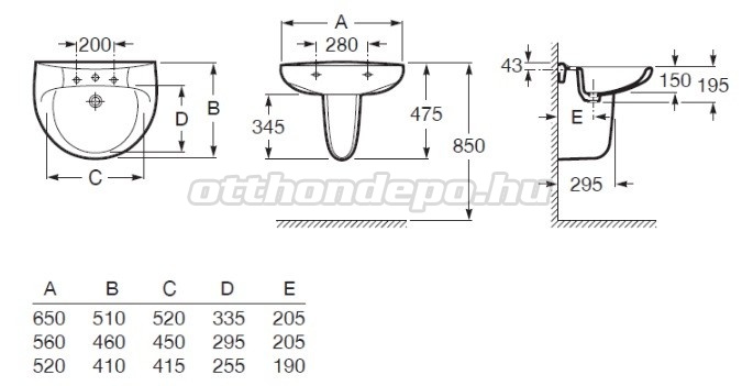 | A mosdó mérete | 56 cm |