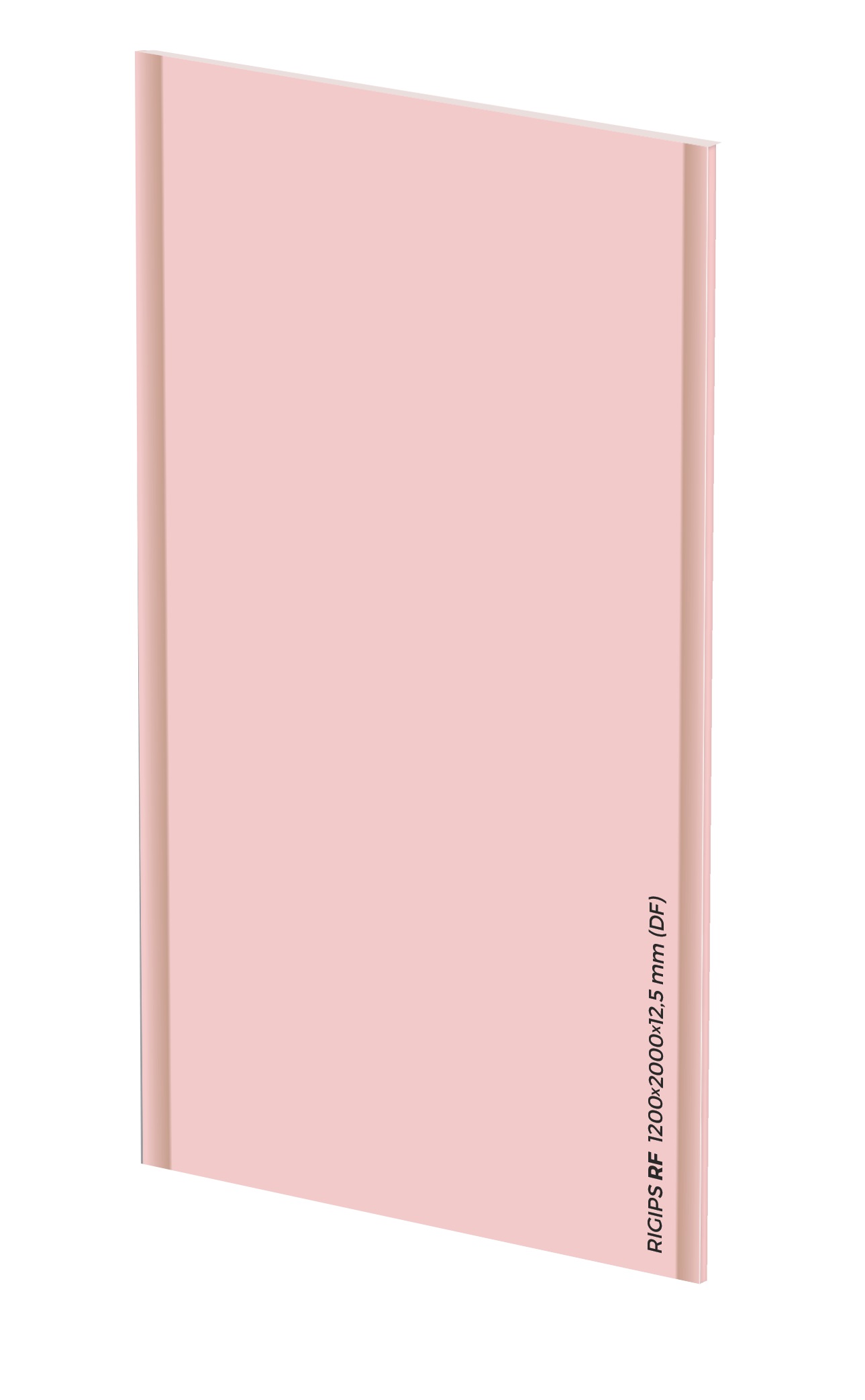 Tűzgátló gipszkarton lap. Jelölése: RF (DF) Megjelenés: rózsaszín kartonlap, élén fekete felirat. Tűzgátló szerkezetek építésére belső térbe alkalmas építőlemez. (Rétegrendet lásd a mindenkori rendszerminősítésben.
