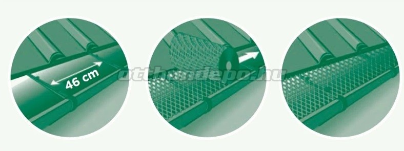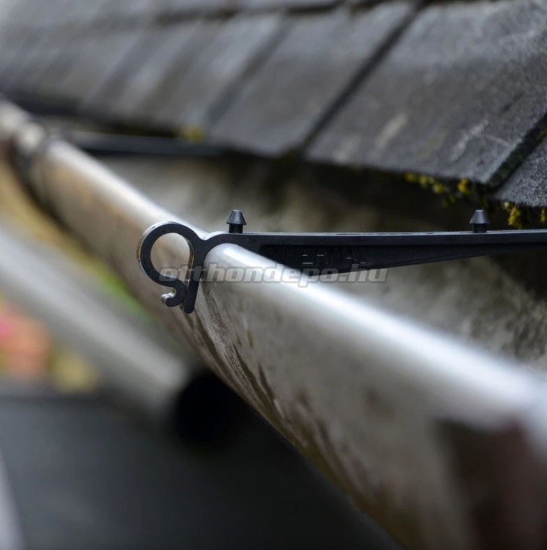 Helyezze el 46 cm-enként a rögzítő kapcsokat a csatorna szélére pattintva, majd fektesse rá a hálót és pattintsa a hálót a fülecske tetején található pöckökre.