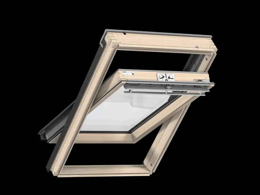 Standard tetőtéri ablakok: Fa, 3-rétegű üvegezésű, extra energia hatékony tetőtéri ablakok alsó kilincses nyitásmóddal, fokozott hangszigeteléssel és esőzajcsökkentéssel,illetve könnyen tisztuló bevonattal.