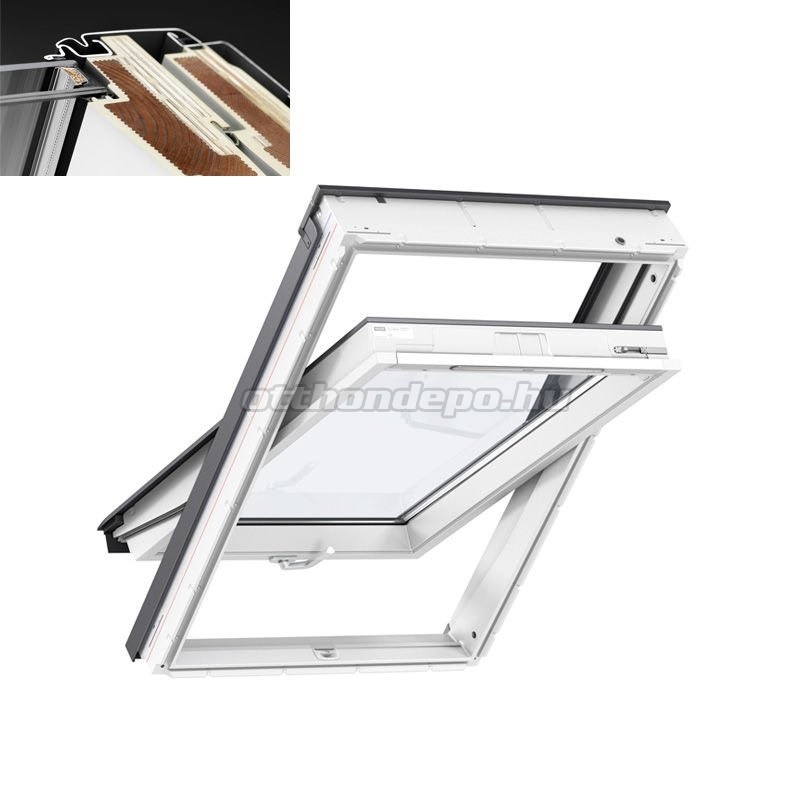 Műanyag, 2-rétegű üvegezésű, extra energia hatékony tetőtéri ablakok felső vagy alsó kilincses nyitásmóddal, fokozott hangszigeteléssel és esőzajcsökkentéssel, illetve könnyen tisztuló bevonattal.