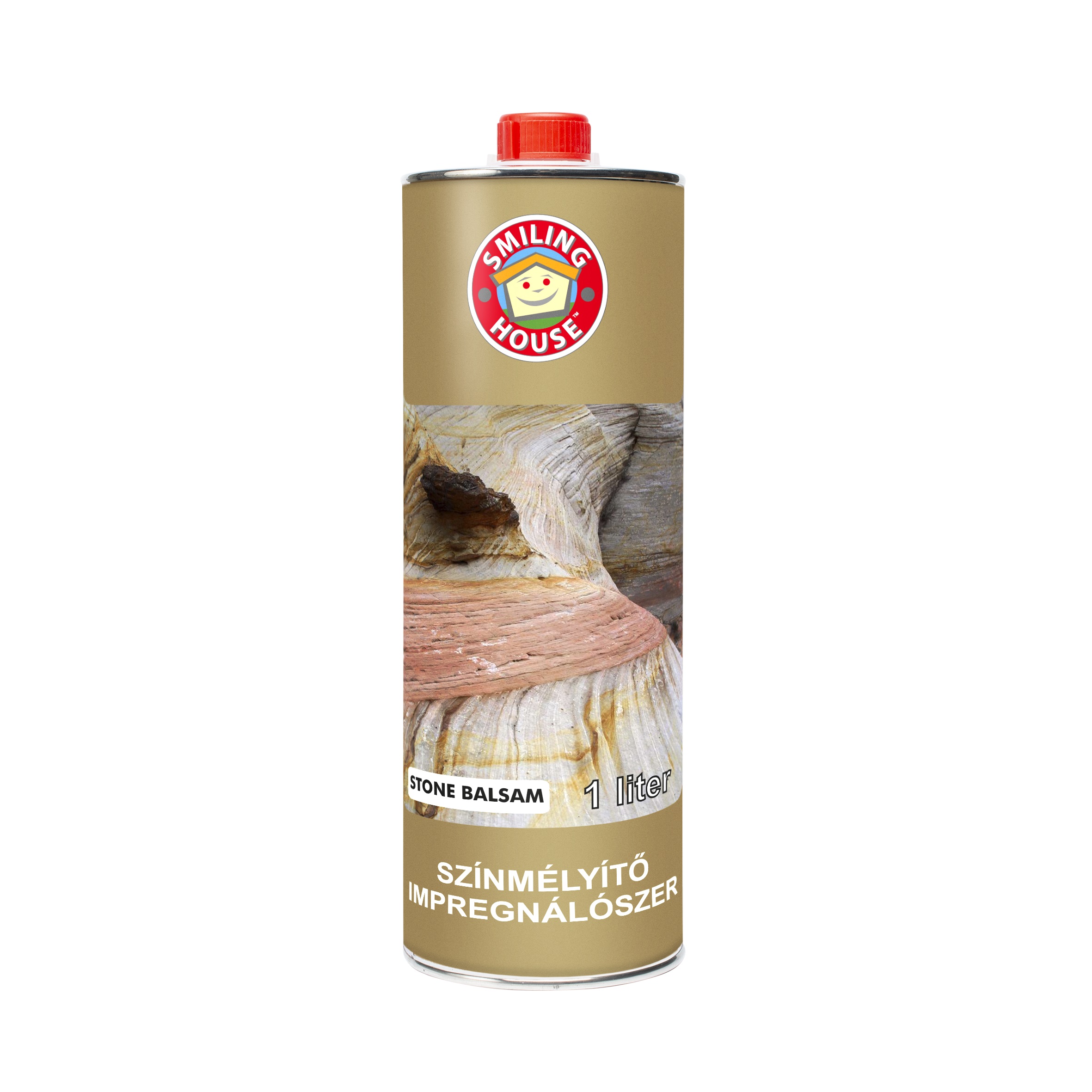 kövek szerkezetének. Minden kő belső szerkezete, erezete más és más. Ezek a mintázatok az emberi szemnek kellemes esztétikai látványt nyújtanak. Sajnos a kövek jó része csak nedvesen mutatja meg ezt a fajta szépségét. A SMILING HOUSE AQUA STOP STONE BALSAM segít, hogy szárazon is gyönyörködhessünk köveink textúrájában. Elmélyíti a kezelt kőfelületek színét, kiemeli a kövek természetes erezetét, textúráját. (Fehér, nagyon világos kövek színmélyítésére nem alkalmas, sötét színű kövekhez ajánljuk.) Használatával a kezelt kőfelületek vízlepergetővé válnak, így védelmet nyújt a nedvesség okozta károsodások ellen is. A termék oldószeres. A felhordást annyiszor kell megismételni, amíg a kívánt színmélységet el nem érjük.
