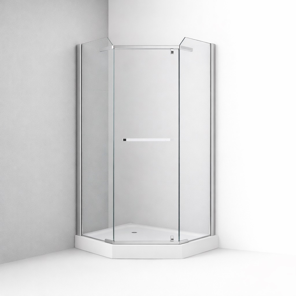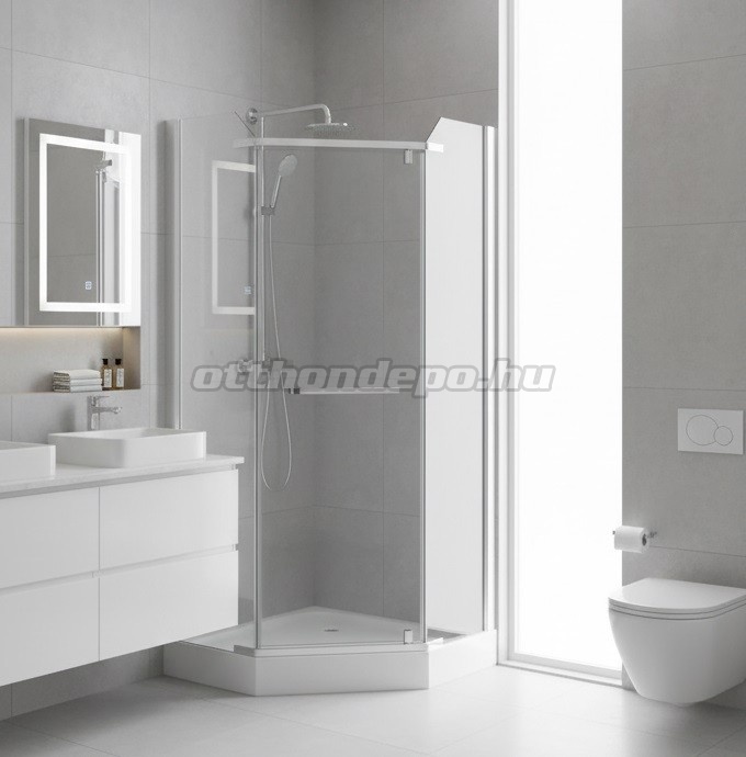 HTB, Zuhanykabin ötszögletű, tálcával és szifonnal, natúr üveg, szatén, 90x90 cm, 8 mm, 8128