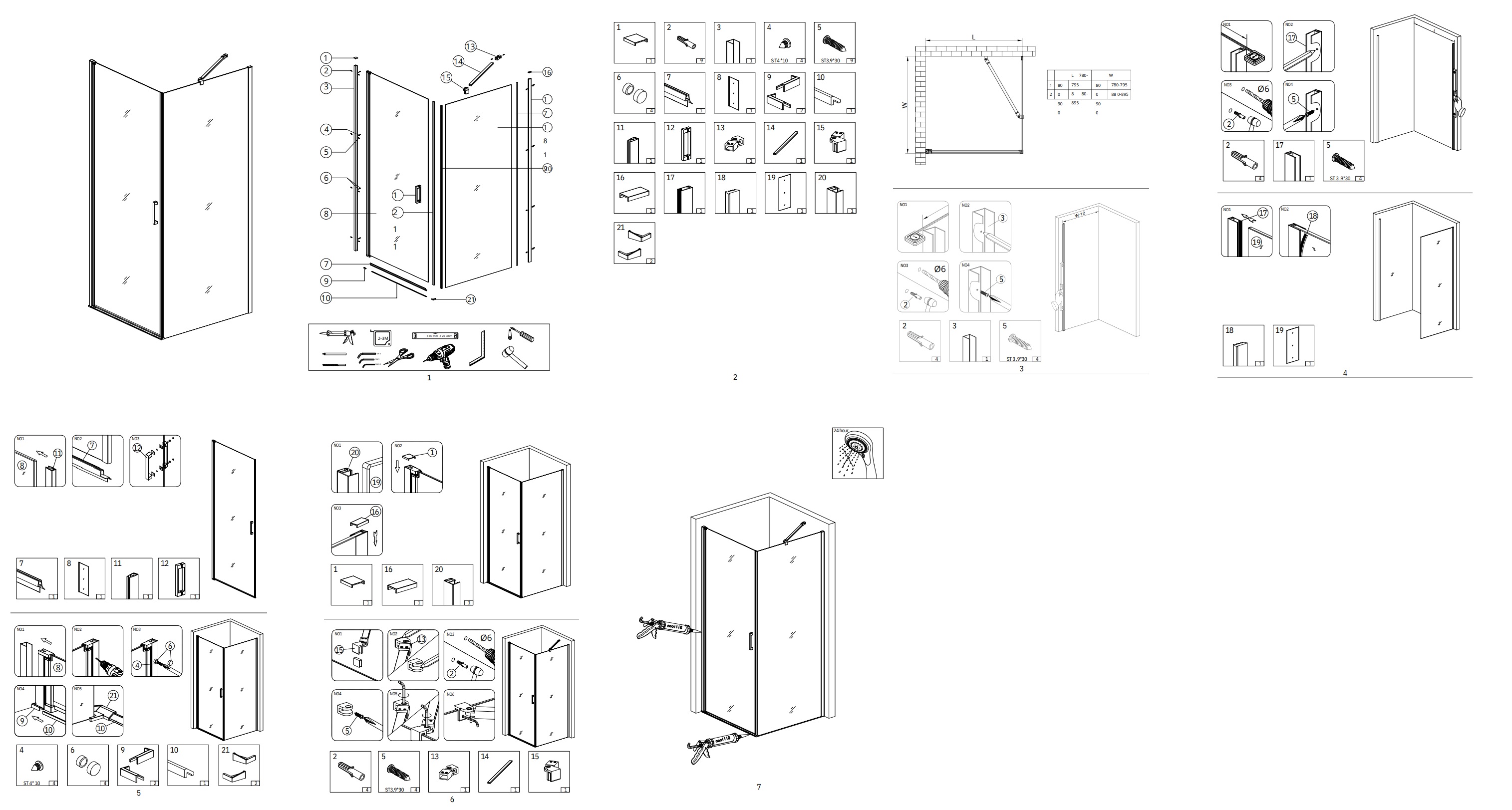 Zuhanykabin, AD LC-123, Szögletes, 6 mm nano felületű üveg, 80x80 cm