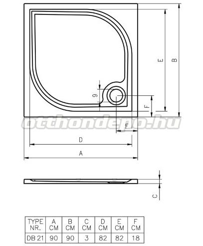 Riho, Kolping öntött márvány szögletes zuhanytálca, DB21, 90*90*3 cm, D004005005