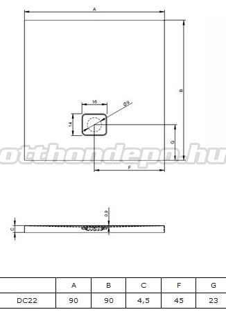 Riho, Basel akril szögletes zuhanytálca, 412 modell DC22, 90*90 cm, D005017005