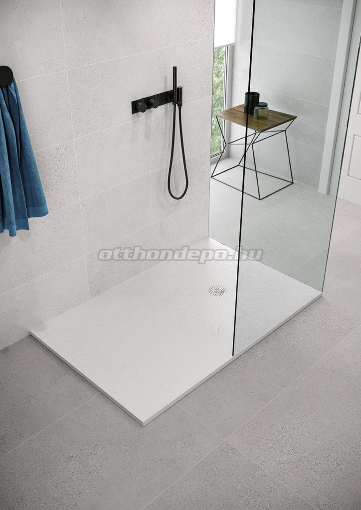 Zenon, Smart SL Nieve fehér műmárvány zuhanytálca szifon és inox lefolyófedővel 90*100 cm 8445583170771
